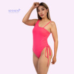 This elegant one-piece swimsuit features a modern halter-style top with a front ring and an asymmetric cut-out design, creating a unique and eye-catching look.The halter neckline elongates the upper body, while the front ring adds a refined touch and helps the swimsuit sit neatly on the body.The lower part of the swimsuit is designed with a mid-leg cut, which provides the perfect balance between coverage, comfort, and style.This cut is one of the most popular choices because it stays in place during movement and offers a naturally flattering shape.If you’re looking for a swimsuit that’s stylish, flattering, comfortable, and practical for swimming, this design is an excellent choice.Made from high-quality swimwear fabric, this swimsuit is resistant to chlorine, saltwater, and sunlight.It maintains its elasticity and color even with frequent use, while the soft and flexible texture ensures full comfort during swimming and long wear. -
